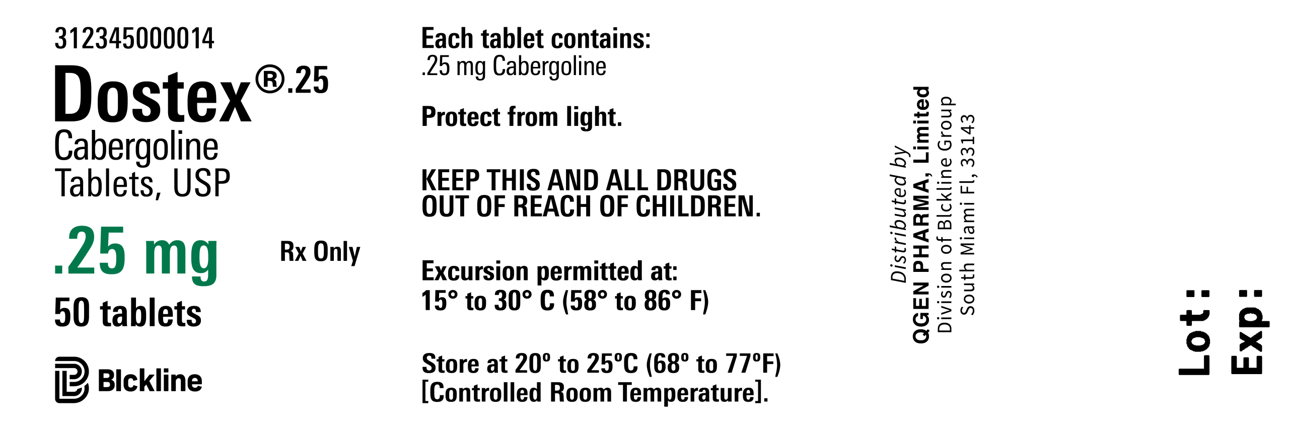 Cabergoline – 0.25mg / 50 Tablets